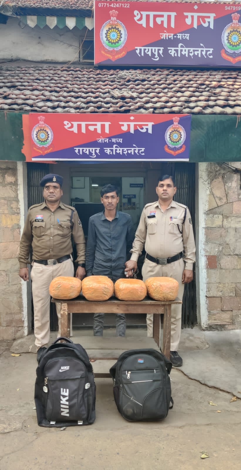 रायपुर। रायपुर पुलिस के डीसीपी सेंट्रल ज़ोन के निर्देशन में थाना गंज पुलिस व क्राइम यूनिट की संयुक्त कार्रवाई में रेलवे स्टेशन के पास 8 किलोग्राम गांजा जब्त किया गया। मामले में एक युवक और एक विधि से संघर्षरत बालक को गिरफ्तार किया गया है।